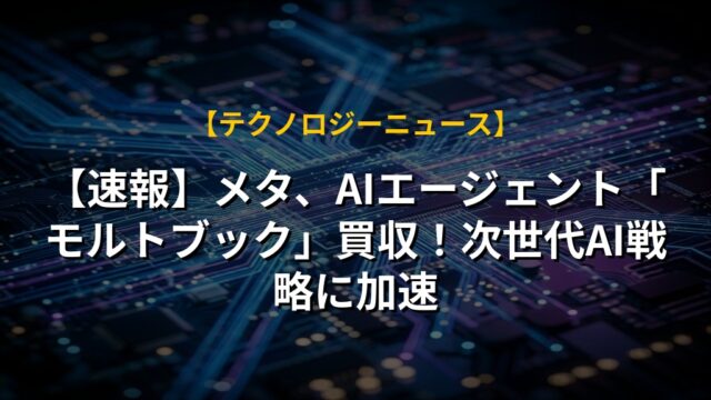 【速報】メタ、AIエージェント「モルトブック」買収!次世代AI戦略に加速