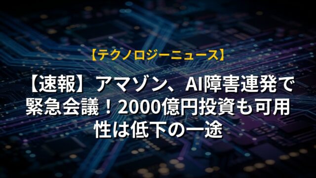 【速報】アマゾン、AI障害連発で緊急会議!2000億円投資も可用性は低下の一途