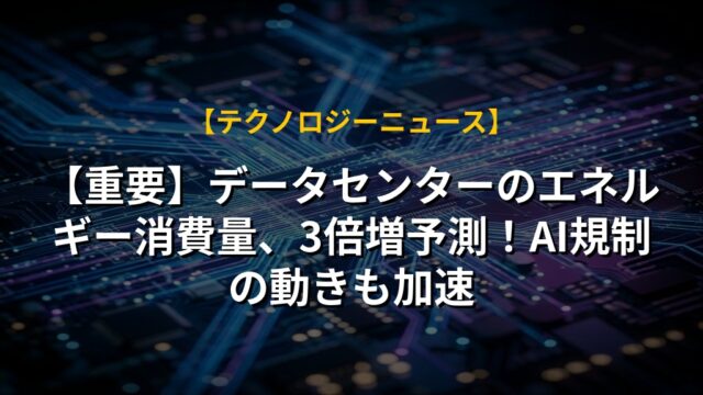 【重要】データセンターのエネルギー消費量、3倍増予測!AI規制の動きも加速