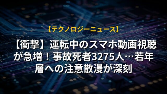 【衝撃】運転中のスマホ動画視聴が急増!事故死者3275人…若年層への注意散漫が深刻