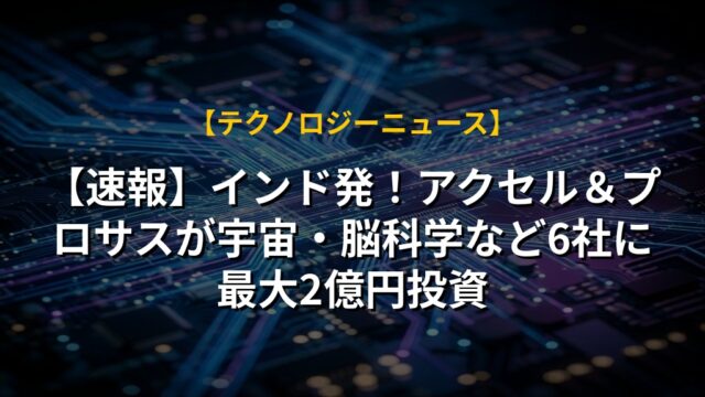 【速報】インド発!アクセル&プロサスが宇宙・脳科学など6社に最大2億円投資