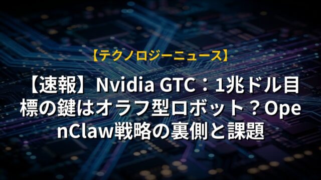【速報】Nvidia GTC:1兆ドル目標の鍵はオラフ型ロボット?OpenClaw戦略の裏側と課題