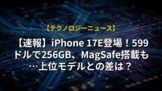 【速報】iPhone 17E登場!599ドルで256GB、MagSafe搭載も…上位モデルとの差は?