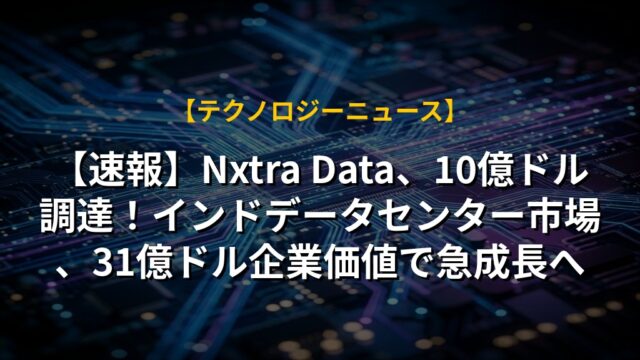 【速報】Nxtra Data、10億ドル調達!インドデータセンター市場、31億ドル企業価値で急成長へ