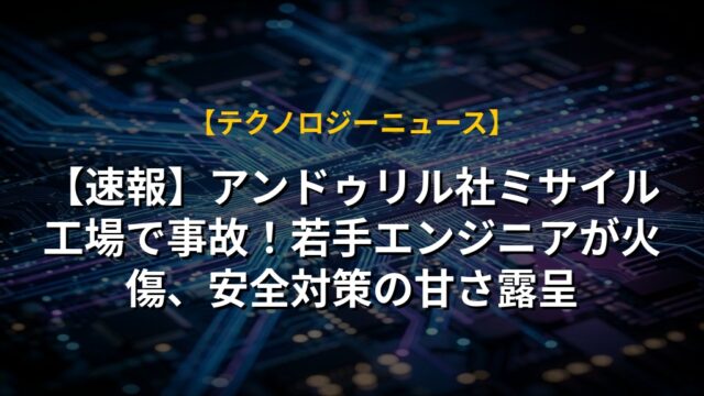 【速報】アンドゥリル社ミサイル工場で事故!若手エンジニアが火傷、安全対策の甘さ露呈