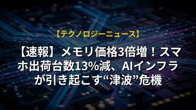 【速報】メモリ価格3倍増!スマホ出荷台数13%減、AIインフラが引き起こす“津波”危機