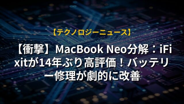 【衝撃】MacBook Neo分解:iFixitが14年ぶり高評価!バッテリー修理が劇的に改善
