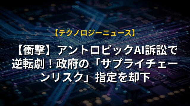 【衝撃】アントロピックAI訴訟で逆転劇!政府の「サプライチェーンリスク」指定を却下