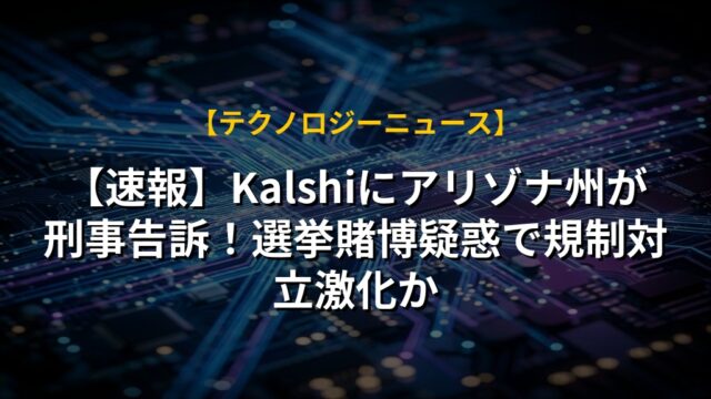 【速報】Kalshiにアリゾナ州が刑事告訴!選挙賭博疑惑で規制対立激化か