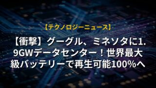 【衝撃】グーグル、ミネソタに1.9GWデータセンター!世界最大級バッテリーで再生可能100%へ