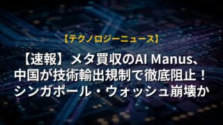 【速報】メタ買収のAI Manus、中国が技術輸出規制で徹底阻止!シンガポール・ウォッシュ崩壊か