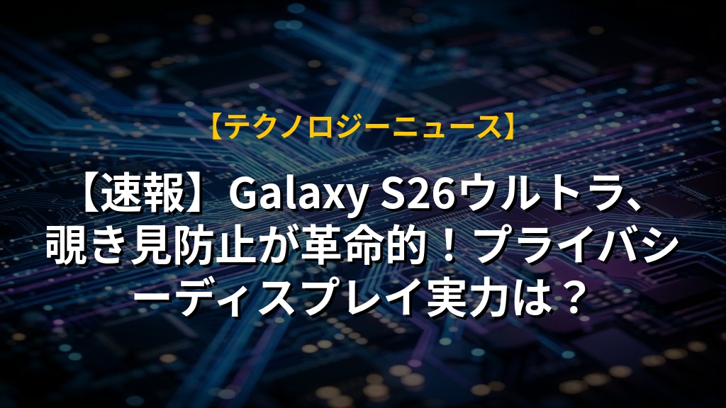 【速報】Galaxy S26ウルトラ、覗き見防止が革命的!プライバシーディスプレイ実力は?