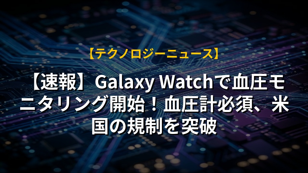 米国におけるサムスン・エレクトロニクスのGalaxy Watch向け血圧モニタリング機能提供開始は、単なる機能追加ではありません。