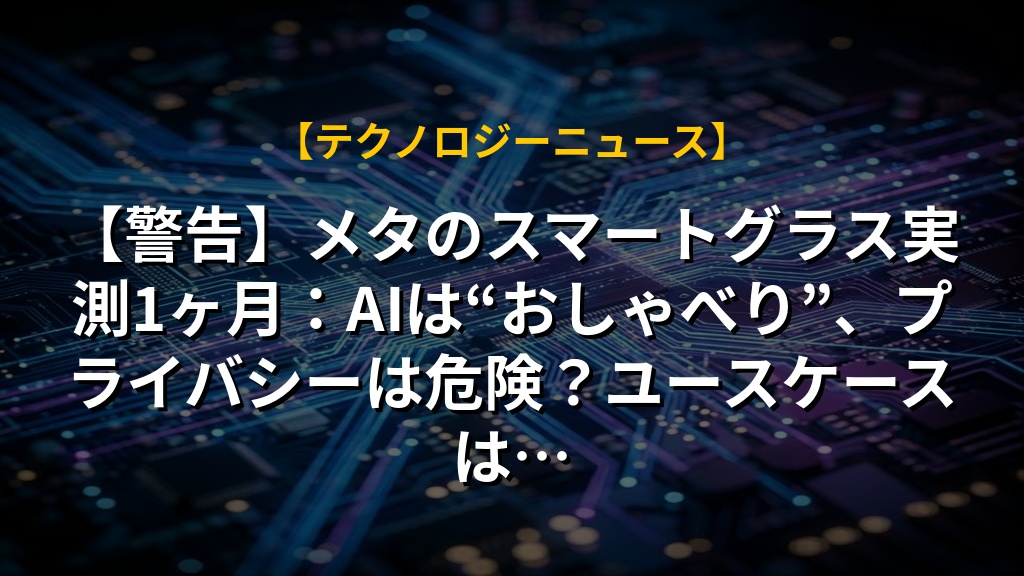【警告】メタのスマートグラス実測1ヶ月:AIは“おしゃべり”、プライバシーは危険?ユースケースは…