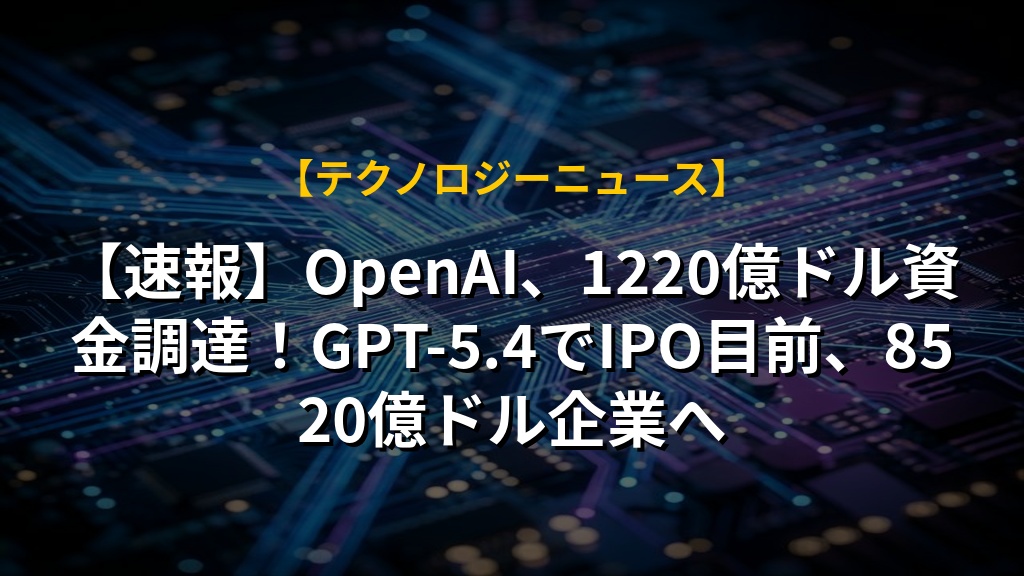 【速報】OpenAI、1220億ドル資金調達!GPT-5.4でIPO目前、8520億ドル企業へ