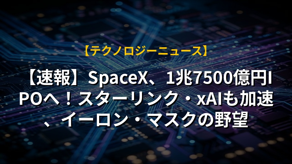【速報】SpaceX、1兆7500億円IPOへ!スターリンク・xAIも加速、イーロン・マスクの野望の注目ポイントまとめ
