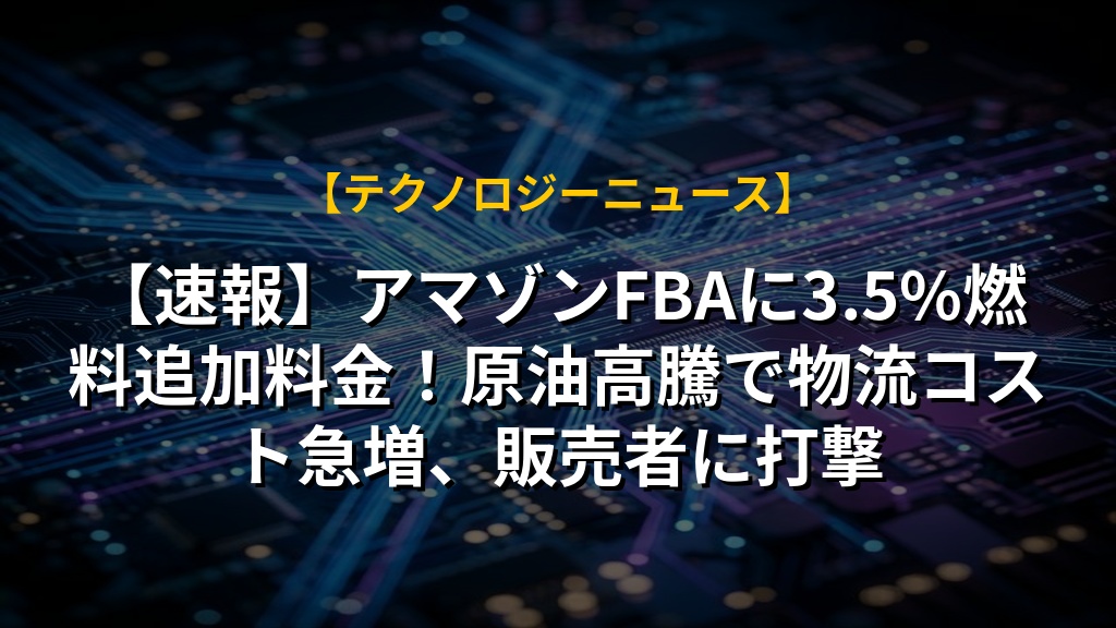 【速報】アマゾンFBAに3.5%燃料追加料金!原油高騰で物流コスト急増、販売者に打撃の注目ポイントまとめ