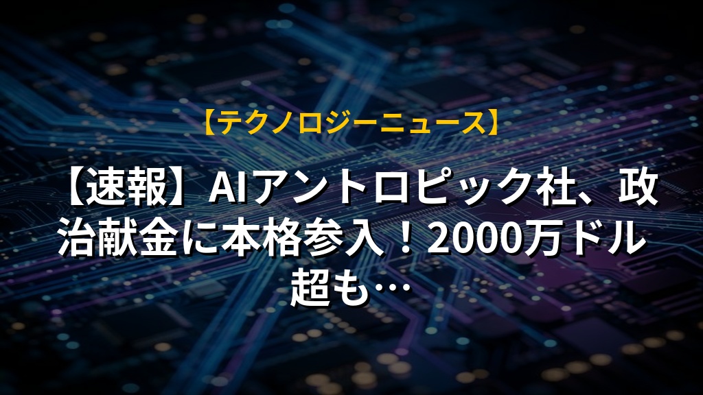 【速報】AIアントロピック社、政治献金に本格参入!2000万ドル超も…