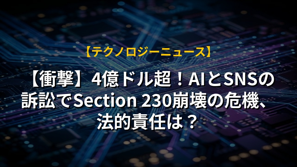 【衝撃】4億ドル超!AIとSNSの訴訟でSection 230崩壊の危機、法的責任は?