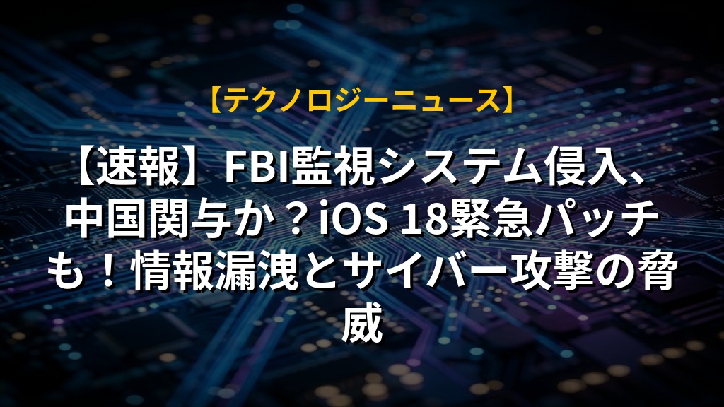 【速報】FBI監視システム侵入、中国関与か?iOS 18緊急パッチも!情報漏洩とサイバー攻撃の脅威