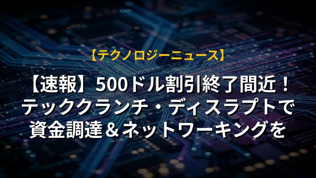 テッククランチ・ディスラプト2026のチケット割引が明日まで!資金調達や人材獲得を目指すなら、この機会を逃すと損するかもしれません。1万人以上の起業家が集まるイベントで、最新技術の情報収集や貴重な人脈作りができます。AI競争が激化する今、未来を左右する出会いがきっと見つかるはずです。少しでも興味があれば、早めの登録をおすすめします。