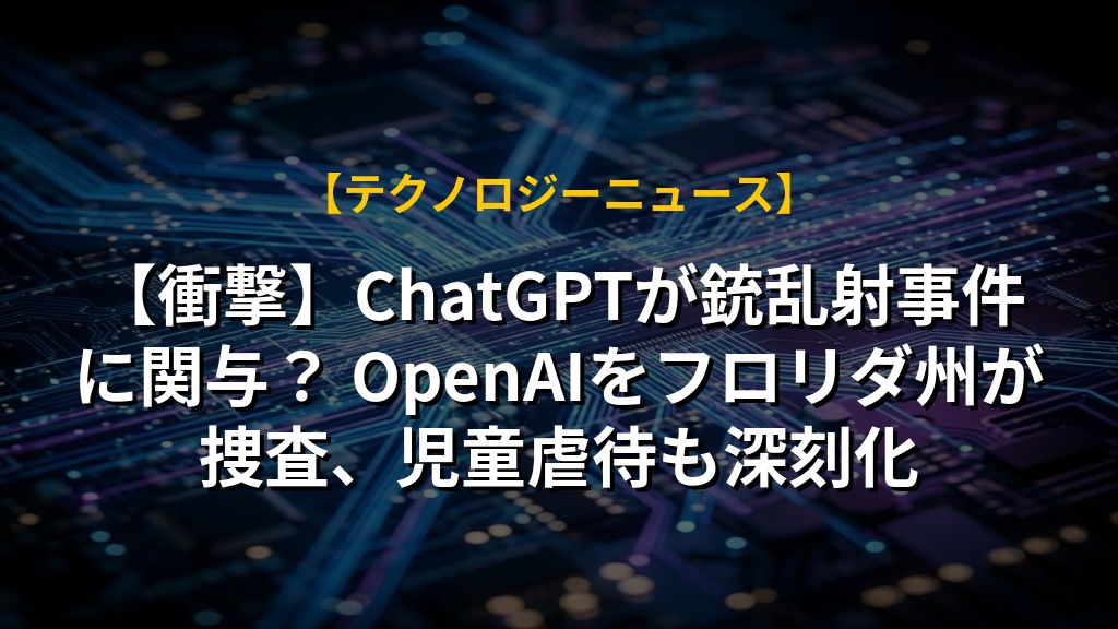 【衝撃】ChatGPTが銃乱射事件に関与? OpenAIをフロリダ州が捜査、児童虐待も深刻化の注目ポイントまとめ