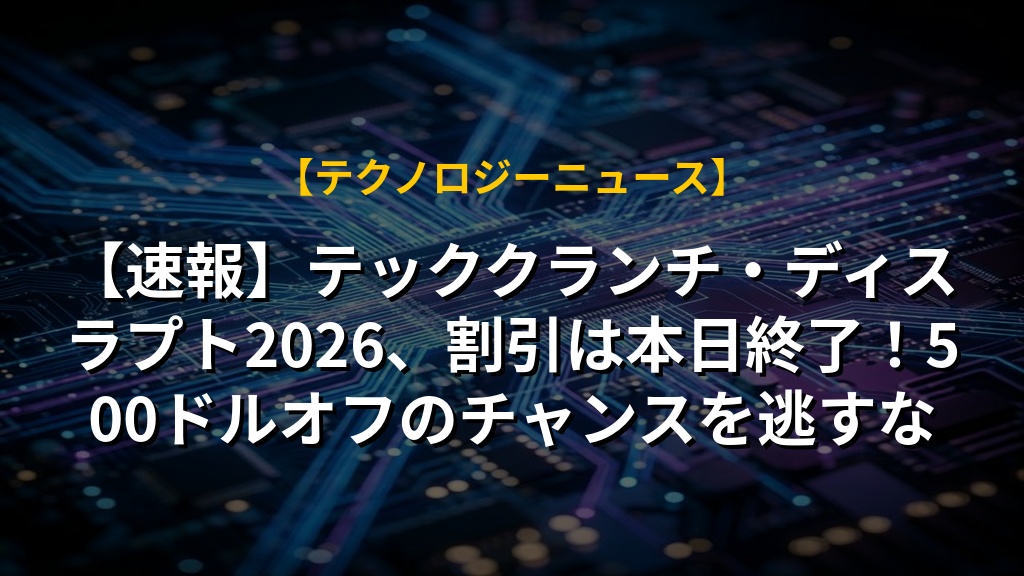 【速報】テッククランチ・ディスラプト2026、割引は本日終了!500ドルオフのチャンスを逃すな