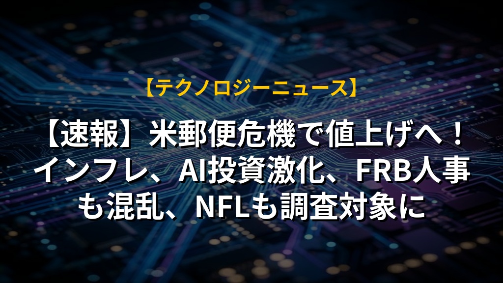 【速報】米郵便危機で値上げへ!インフレ、AI投資激化、FRB人事も混乱、NFLも調査対象にの注目ポイントまとめ