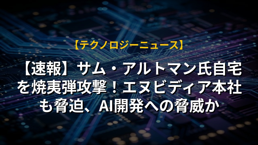 【速報】サム・アルトマン氏自宅を焼夷弾攻撃!エヌビディア本社も脅迫、AI開発への脅威かの注目ポイントまとめ