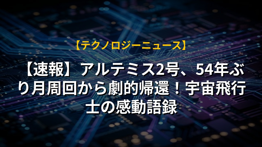 【速報】アルテミス2号、54年ぶり月周回から劇的帰還!宇宙飛行士の感動語録