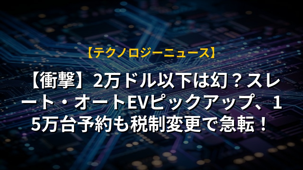 【衝撃】2万ドル以下は幻?スレート・オートEVピックアップ、15万台予約も税制変更で急転!