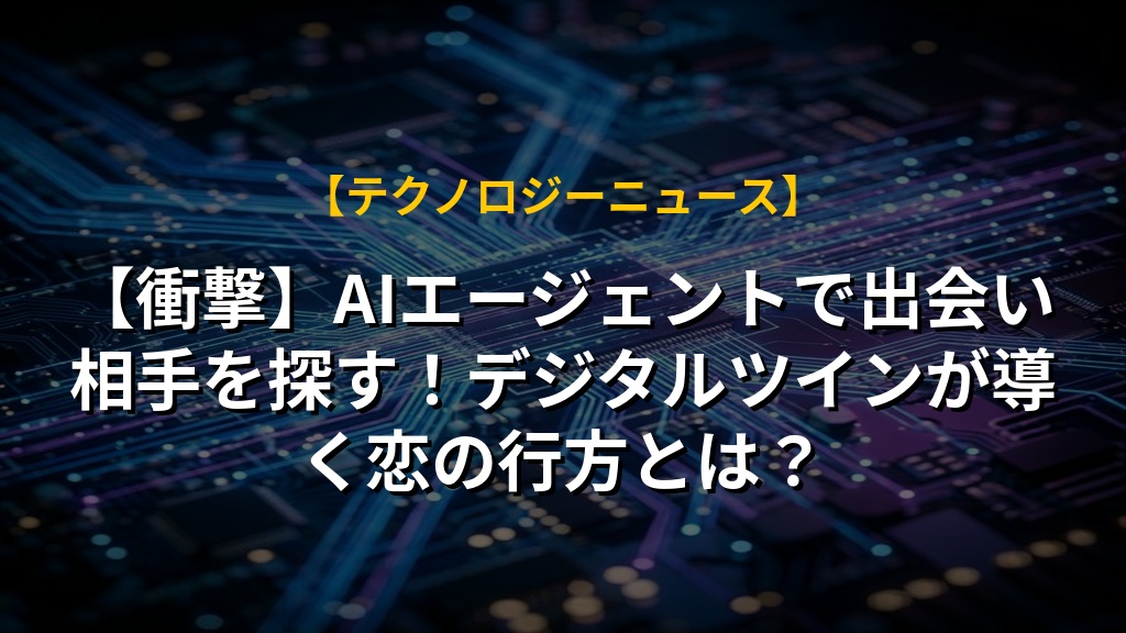 【衝撃】AIエージェントで出会い相手を探す!デジタルツインが導く恋の行方とは?
