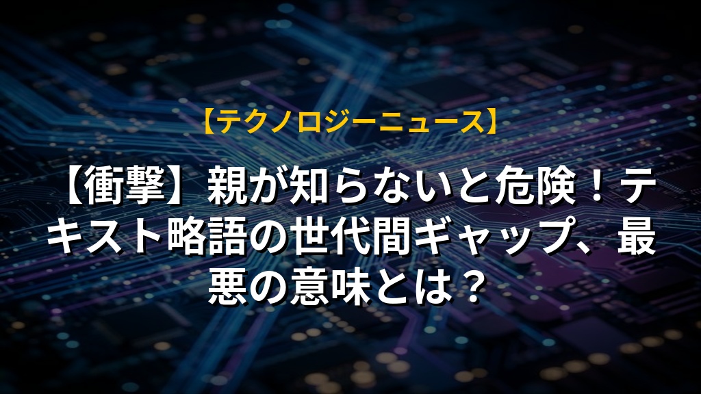 【衝撃】親が知らないと危険!テキスト略語の世代間ギャップ、最悪の意味とは?