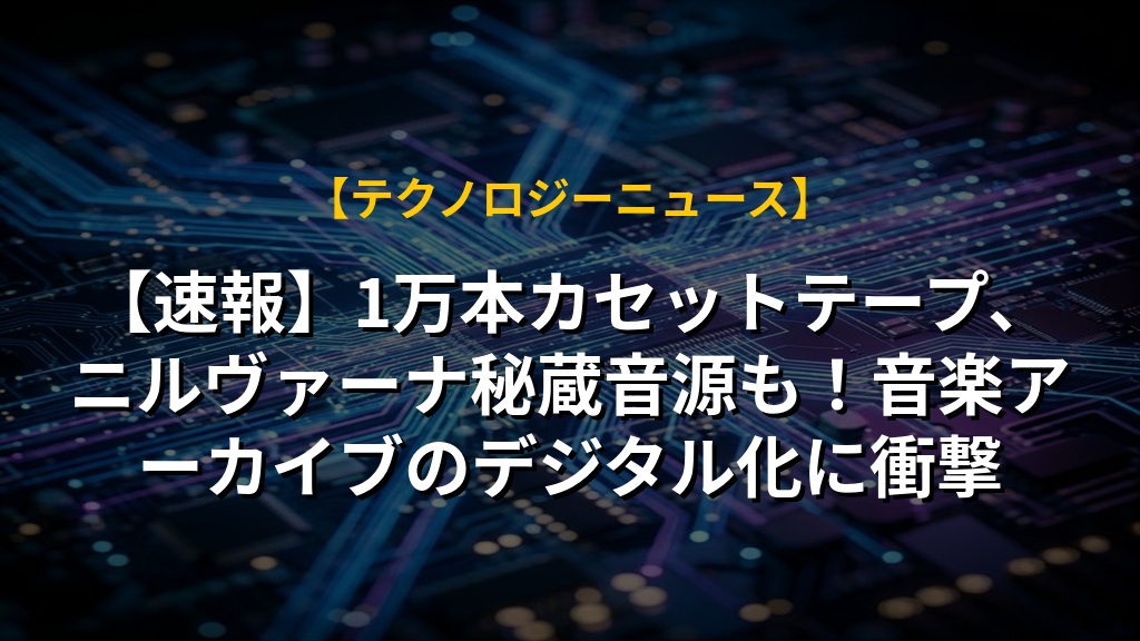 長年コンサートの録音を続けてきた音楽ファンのアーダム・ジェイコブスさんのコレクション、なんと1万本以上のカセットテープがインターネット・アーカイブで公開されることになりました。ニルヴァーナの初期の貴重な音源や、ソニック・ユースなどのレアなライブ音源も含まれており、音楽ファンにとっては夢のような内容です。音質は決して完璧ではないものの、ボランティアの方々が丁寧にデジタル化・修復してくれているので、安心して楽しめます。個人の情熱とインターネットの力で、音楽の歴史が鮮やかに蘇る、素晴らしい試みだと思います。