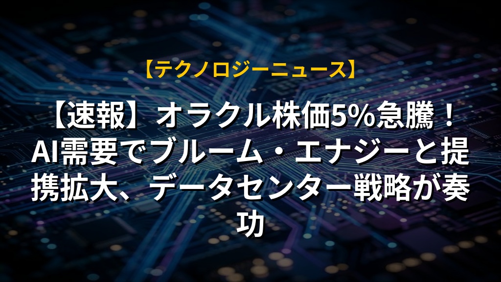 【速報】オラクル株価5%急騰!AI需要でブルーム・エナジーと提携拡大、データセンター戦略が奏功