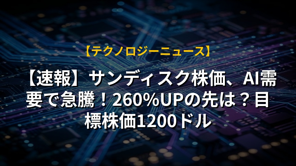 【速報】サンディスク株価、AI需要で急騰!260%UPの先は?目標株価1200ドル