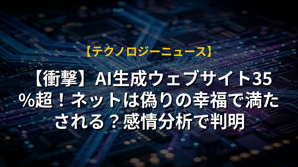 【衝撃】AI生成ウェブサイト35%超!ネットは偽りの幸福で満たされる?感情分析で判明
