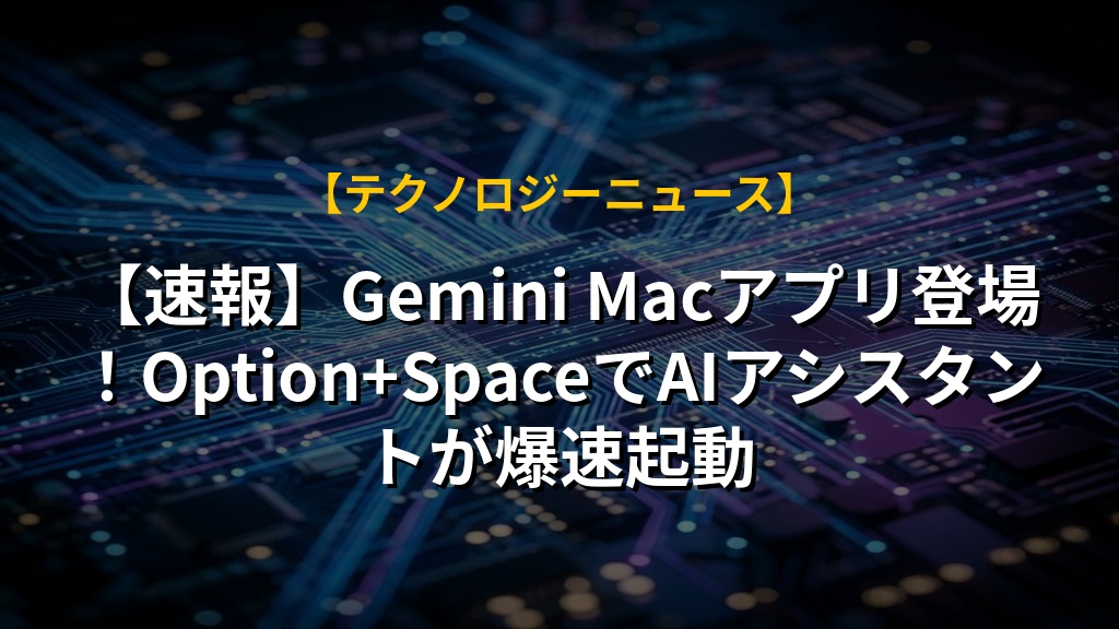 【速報】Gemini Macアプリ登場!Option+SpaceでAIアシスタントが爆速起動の注目ポイントまとめ