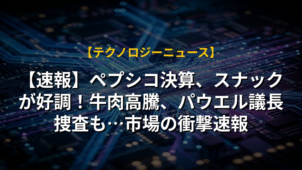 【速報】ペプシコ決算、スナックが好調!牛肉高騰、パウエル議長捜査も…市場の衝撃速報