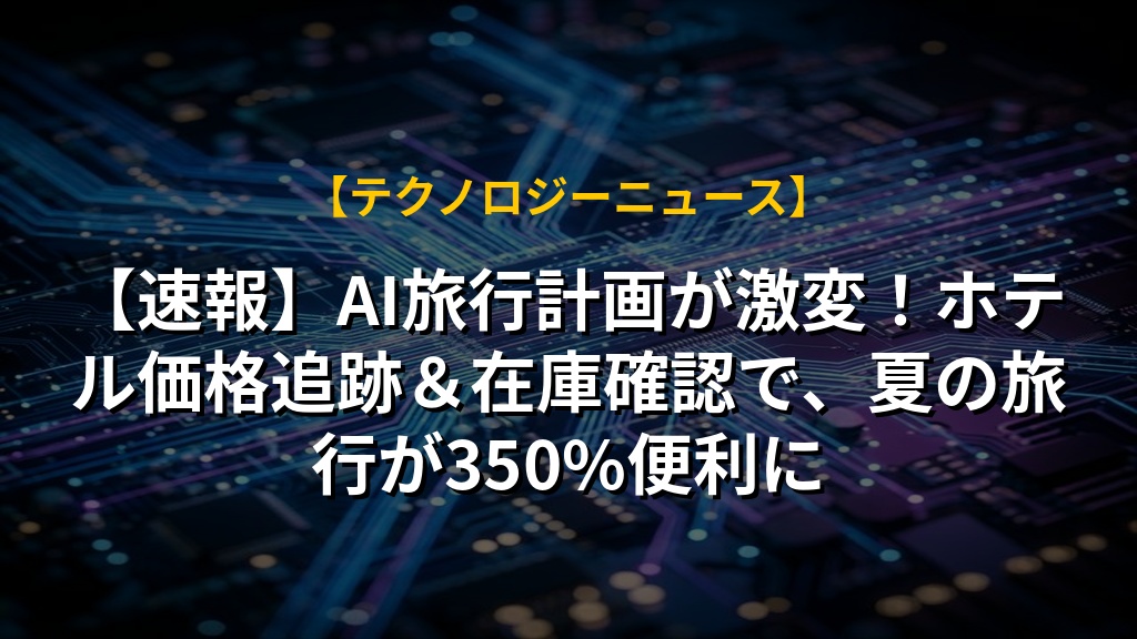【速報】AI旅行計画が激変!ホテル価格追跡&在庫確認で、夏の旅行が350%便利に