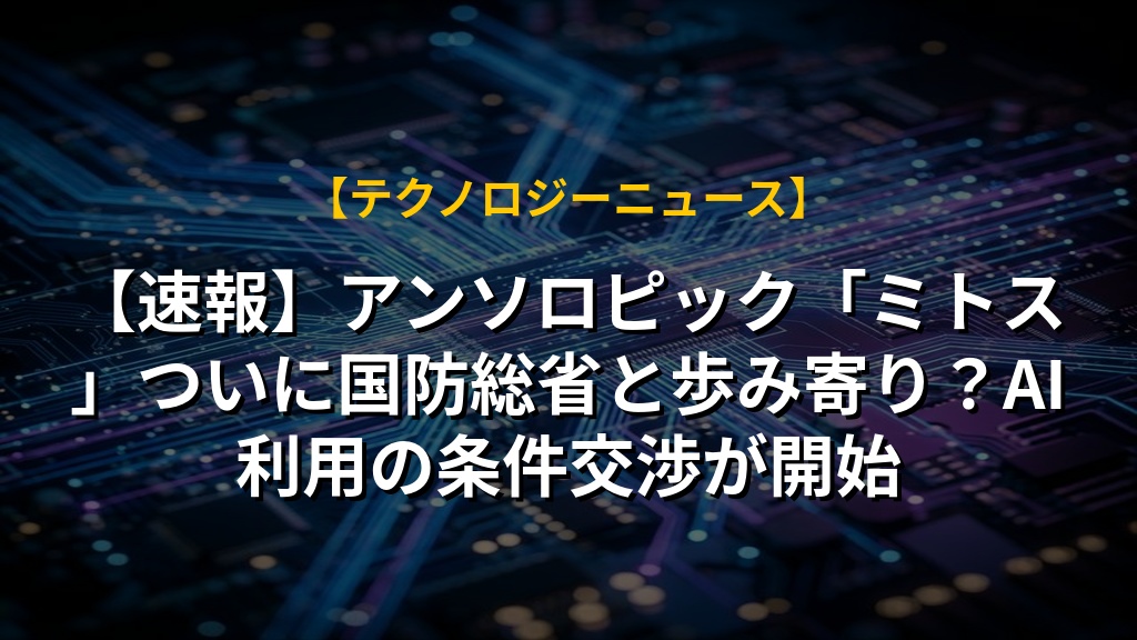 【速報】アンソロピック「ミトス」ついに国防総省と歩み寄り?AI利用の条件交渉が開始