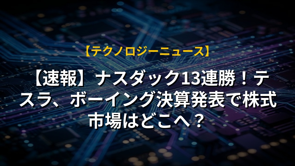 【速報】ナスダック13連勝!テスラ、ボーイング決算発表で株式市場はどこへ?
