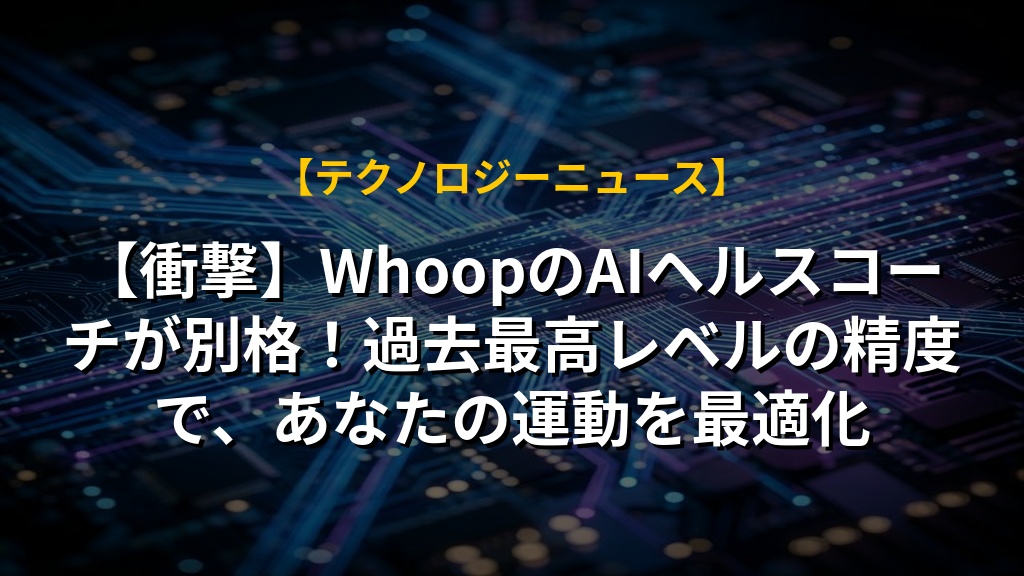 話題のWhoop MGバンドに搭載されたAIヘルスコーチは、従来のAIツールとは一線を画しています。能動的なデータ参照が不要で、心拍数などからまるで専属コーチのように、運動の提案や調整を自動で行ってくれる点が魅力です。プライバシーへの配慮もされており、安心して利用できるでしょう。今後は、AIが個々の状態に合わせた最適なヘルスケアを実現し、私たちの生活をより健康的な方向に導いてくれると期待できます。