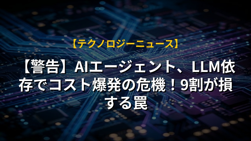 【警告】AIエージェント、LLM依存でコスト爆発の危機!9割が損する罠