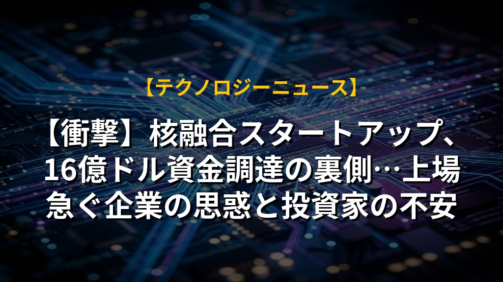 【衝撃】核融合スタートアップ、16億ドル資金調達の裏側…上場急ぐ企業の思惑と投資家の不安の注目ポイントまとめ