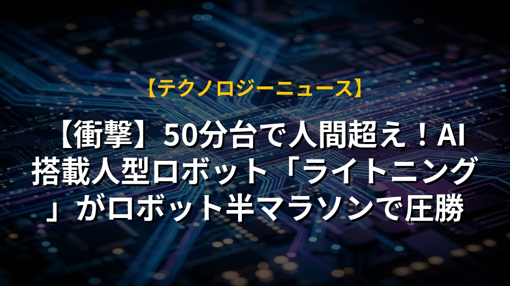 北京で開催されたロボット半マラソンで、オナー社開発の「ライトニング」が驚異的な記録を打ち立てましたね。50分台という人間の記録を大幅に上回る速さは、ロボット技術の進化を強く感じさせます。