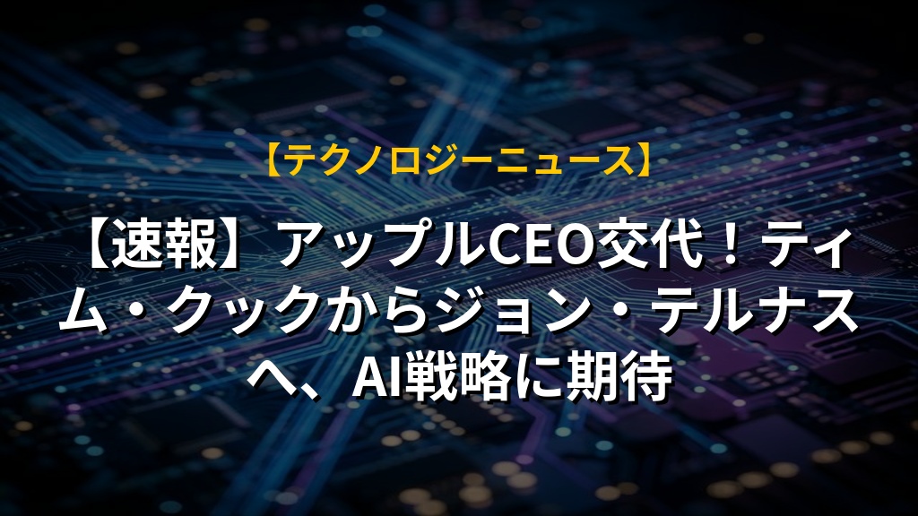 【速報】アップルCEO交代!ティム・クックからジョン・テルナスへ、AI戦略に期待
