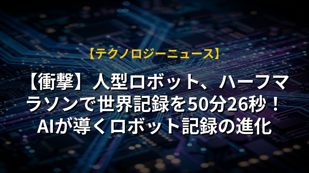 【衝撃】人型ロボット、ハーフマラソンで世界記録を50分26秒!AIが導くロボット記録の進化