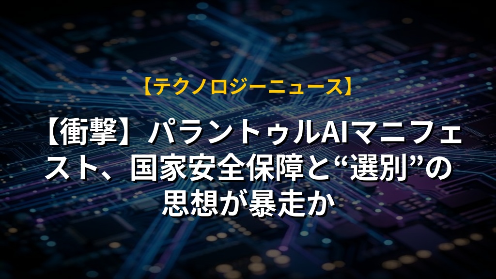 【衝撃】パラントゥルAIマニフェスト、国家安全保障と“選別”の思想が暴走か