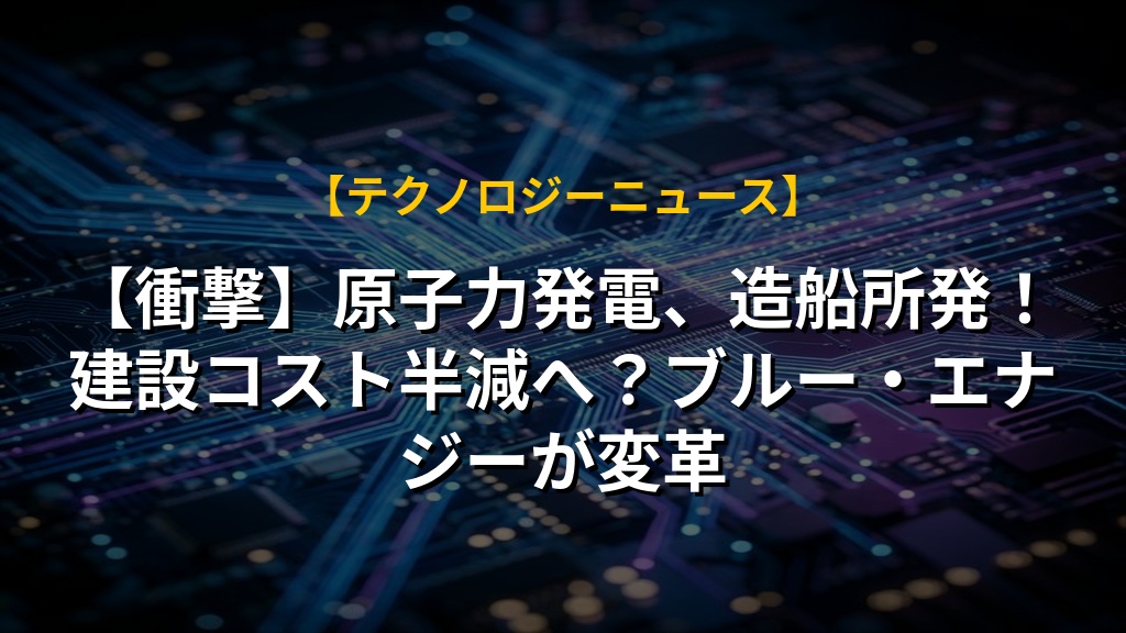 AI需要の高まりと電力不足を背景に、原子力発電への期待が高まっていますね。しかし、これまでの建設コストの高さと遅延が課題でした。そこで、ブルー・エナジー社が造船所での建設を提案し、コスト削減と工期短縮を目指しているんです。